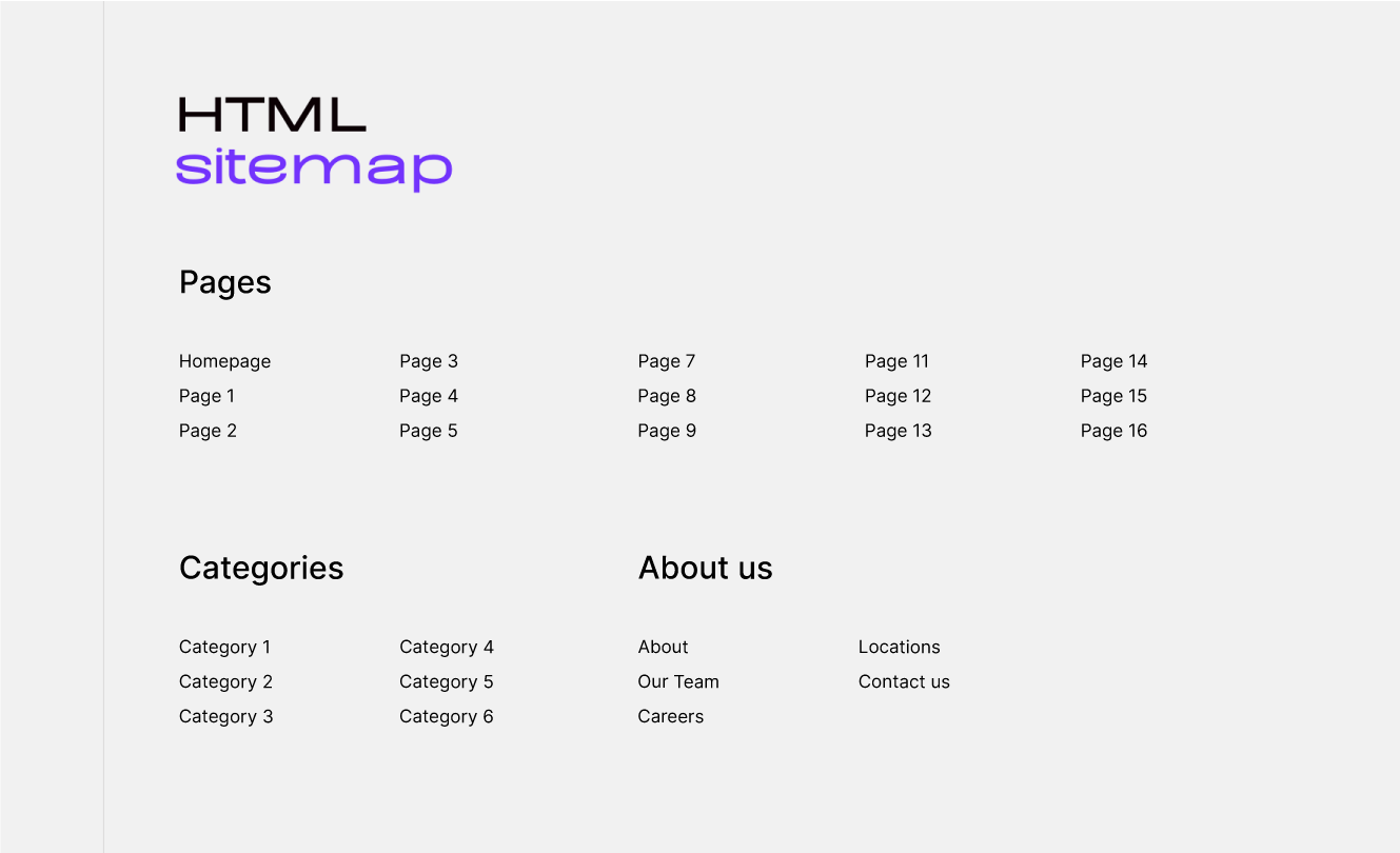HTML sitemaps are formatted links, usually found at the bottom of a website and accessible via its header and footer navigation. They help users find important information quickly. This is more to do with user experience than helping Google understand your website.